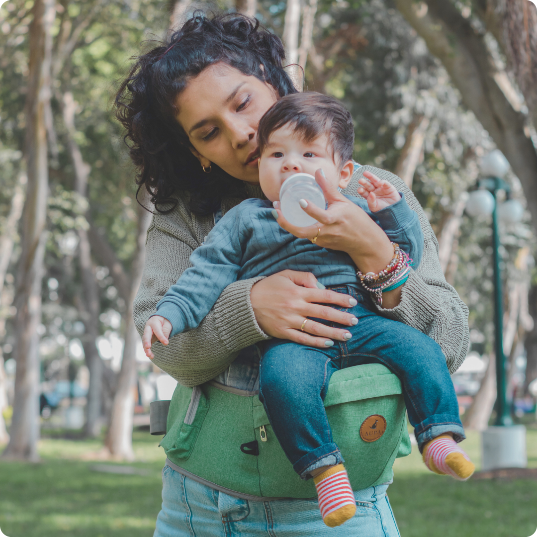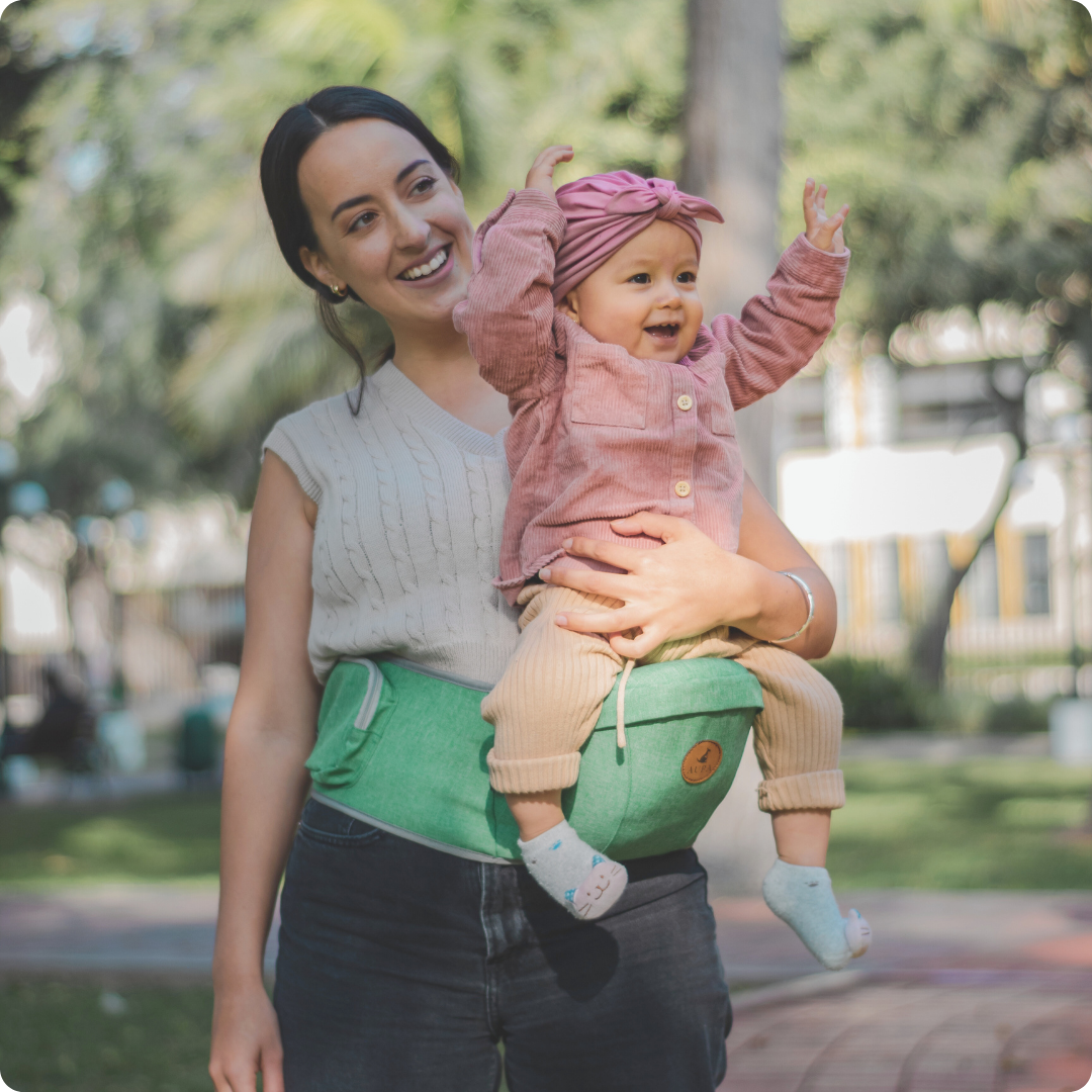 Nuestro asiento porta bebé AUPA permite que el niño se siente cómodamente en su posición natural, permitiendo la adecuada salud y desarrollo de sus caderas.
