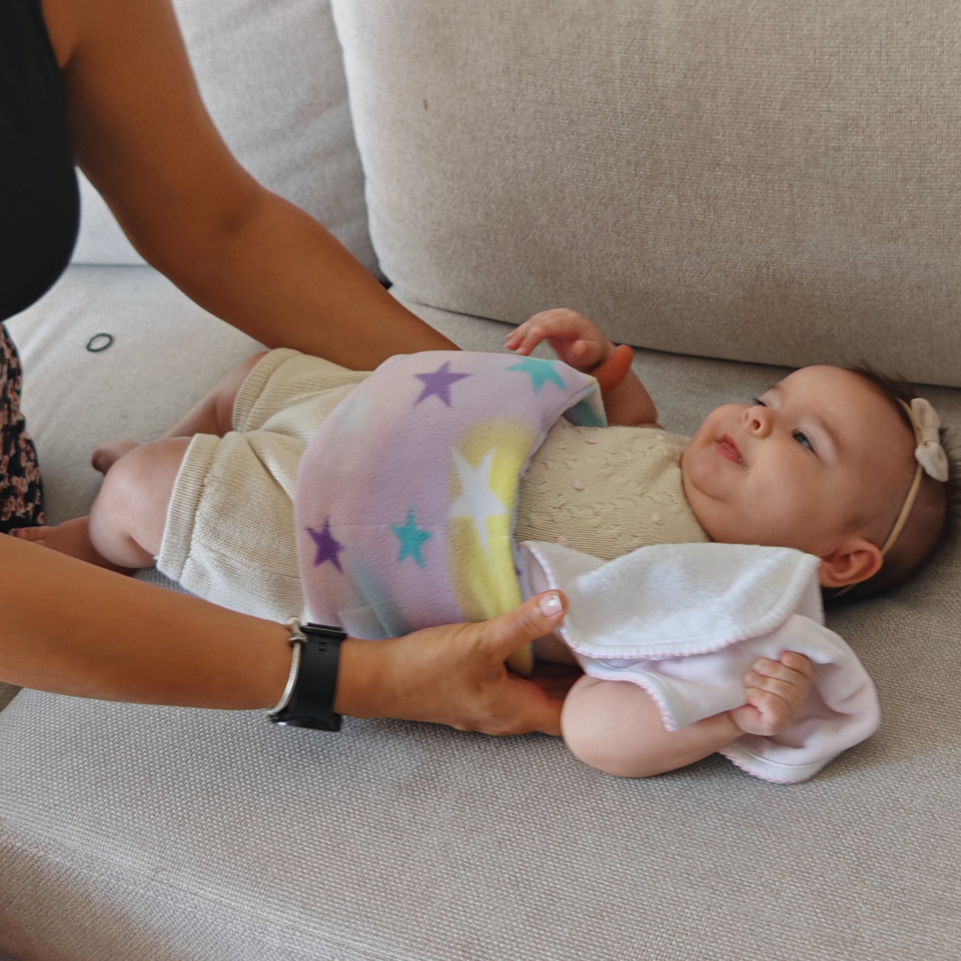 Contención 360°: El cinturón aplica presión suave y constante, ayudando a calmar el reflejo de incomodidad y promoviendo la expulsión de gases.