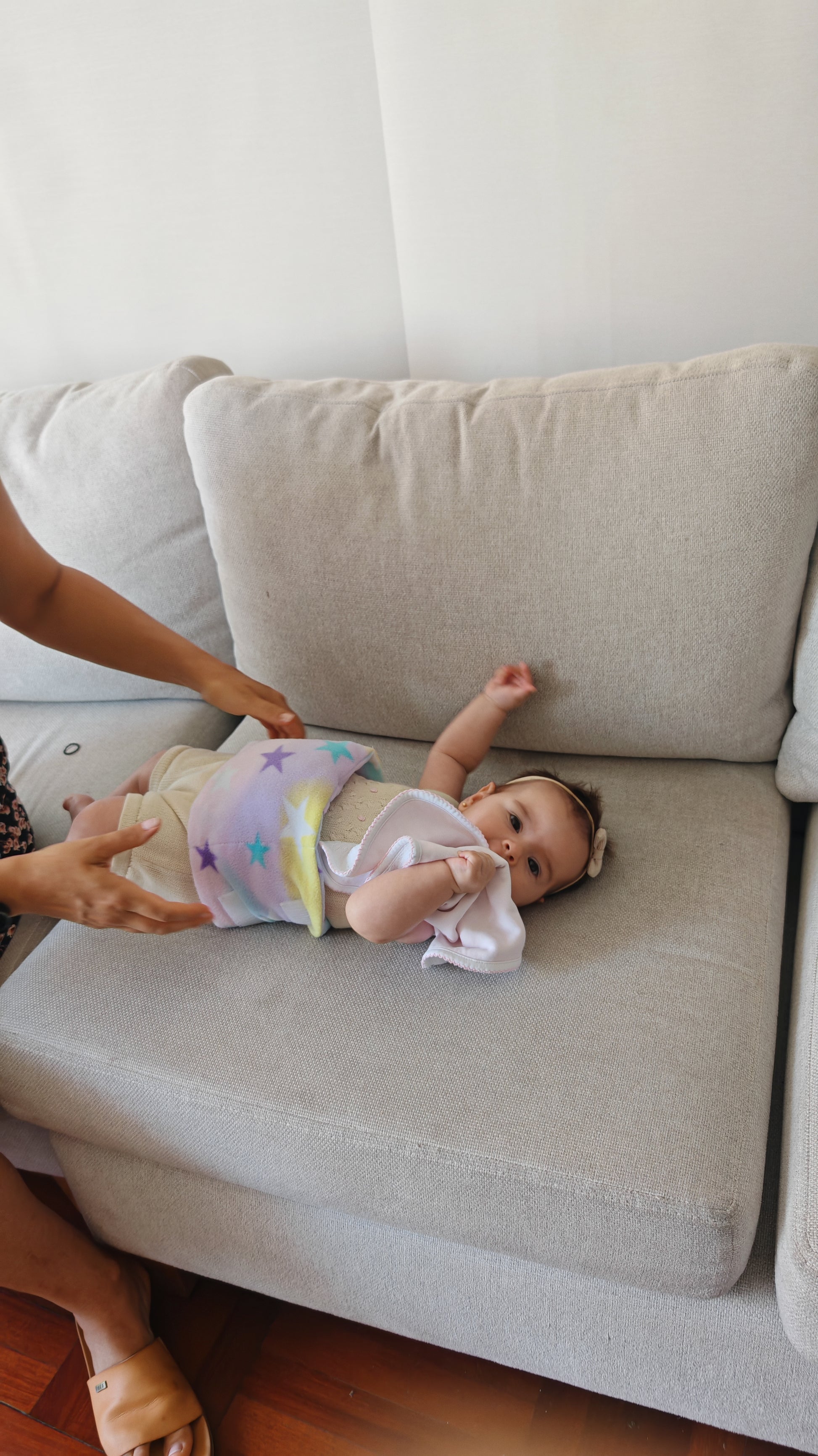 Antes: Llanto, espalda adolorida por horas de mecer, ansiedad por “no saber qué hacer”.
